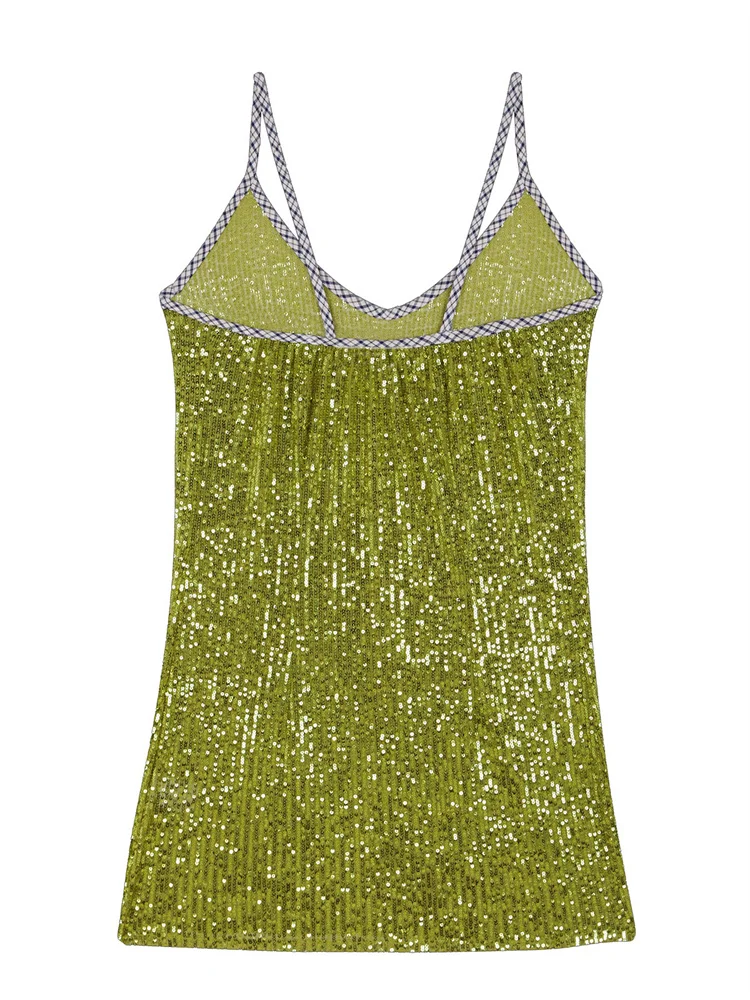 Sparkling sequins, spaghetti straps and sleeveless; Summer dresses for women; Beach dresses for women, mini length design, make your legs longer and slimmer