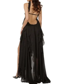 Women Summer Sleeveless Dress Irregular Ruffle Hem Backless Cocktail Party Dress for Beach Club Streetwear Elegant Fairy Clothes